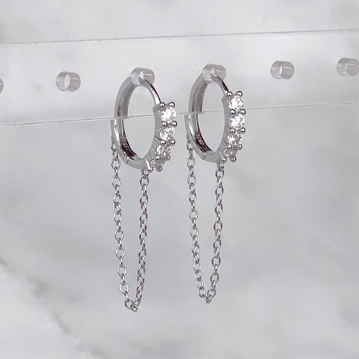 Arracada Cadena Zirconias Plateada
